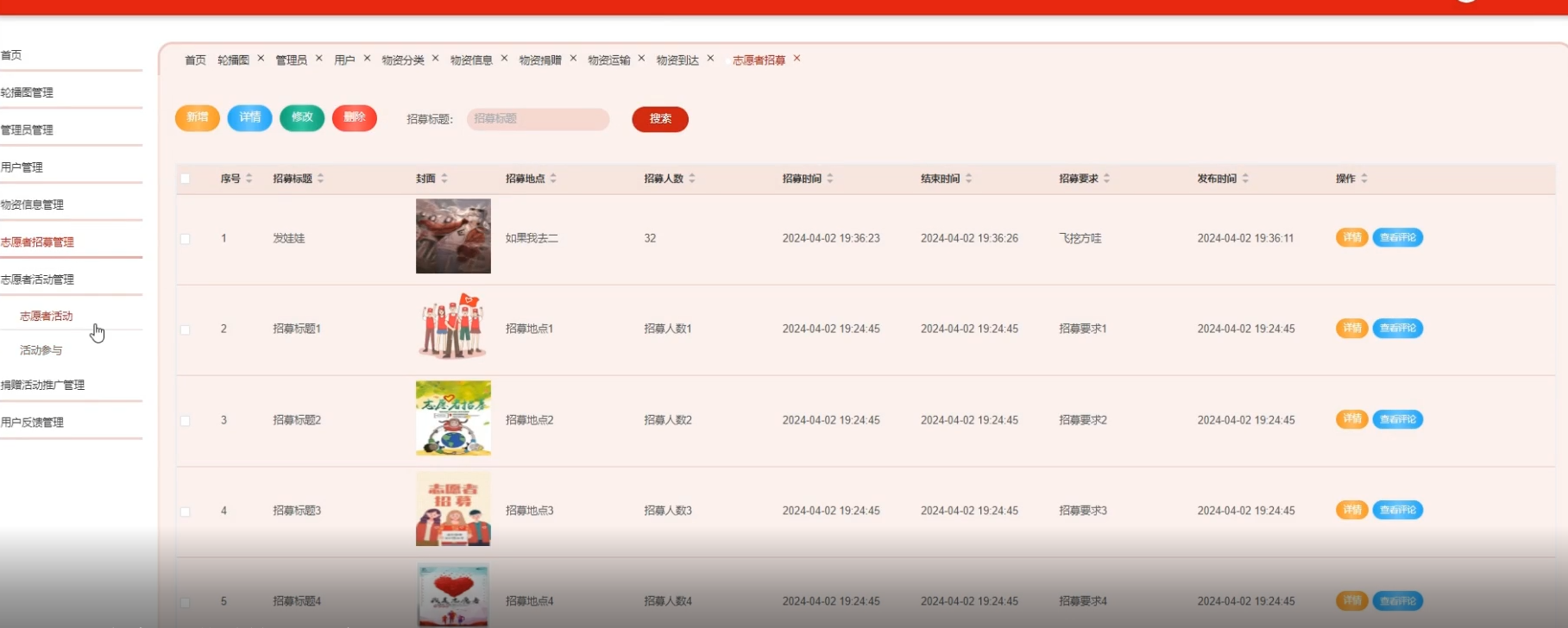 下面是系统运行起来后的一些截图: