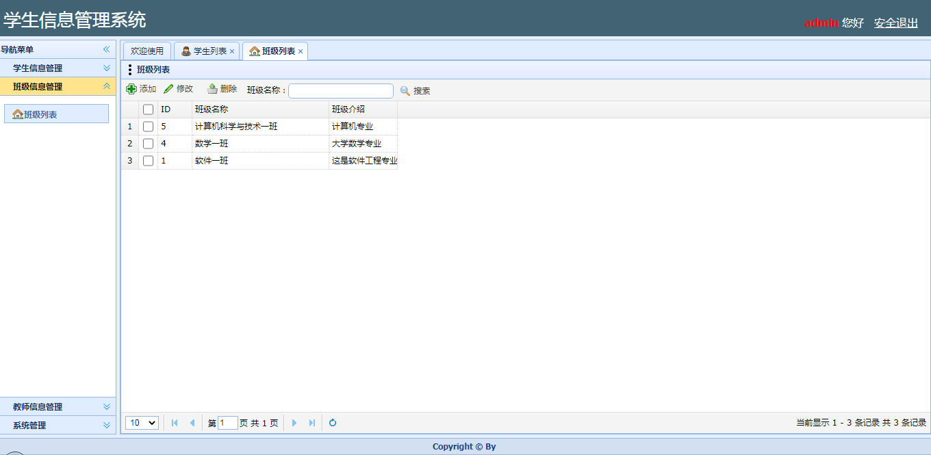 《基于javaweb实现的学生信息管理系统》该项目采用技术:Servlet+Jsp+Jdbc+dbutils+EasyUI+jQuery+Ajax,mysql技术,tomcat服务器等相关技术,项目含有源码、文档、配套开发软件、软件安装教程、项目发布教程等