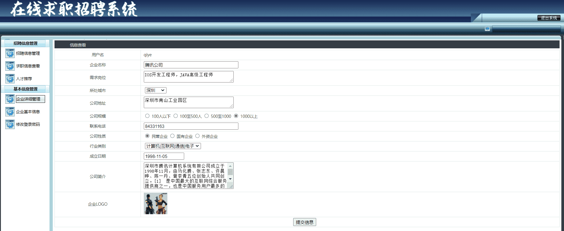 本系统的目的旨在为企业和求职者提供人才招聘、求职、找工作、培训等在内的全方位的人力资源服务。项目有三种角色,管理员,企业,应聘者。