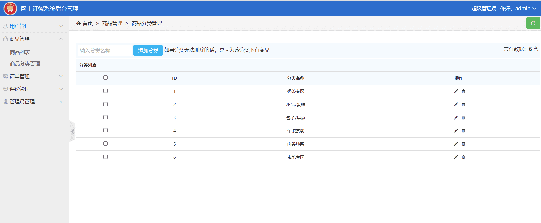 商品管理:商品列表、添加商品、修改商品、删除商品、下架商品、商品分类管理