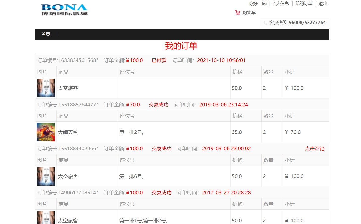 后台管理:管理员可以进行用户管理、管理员管理、影片管理、订单管理、评价管理等等。