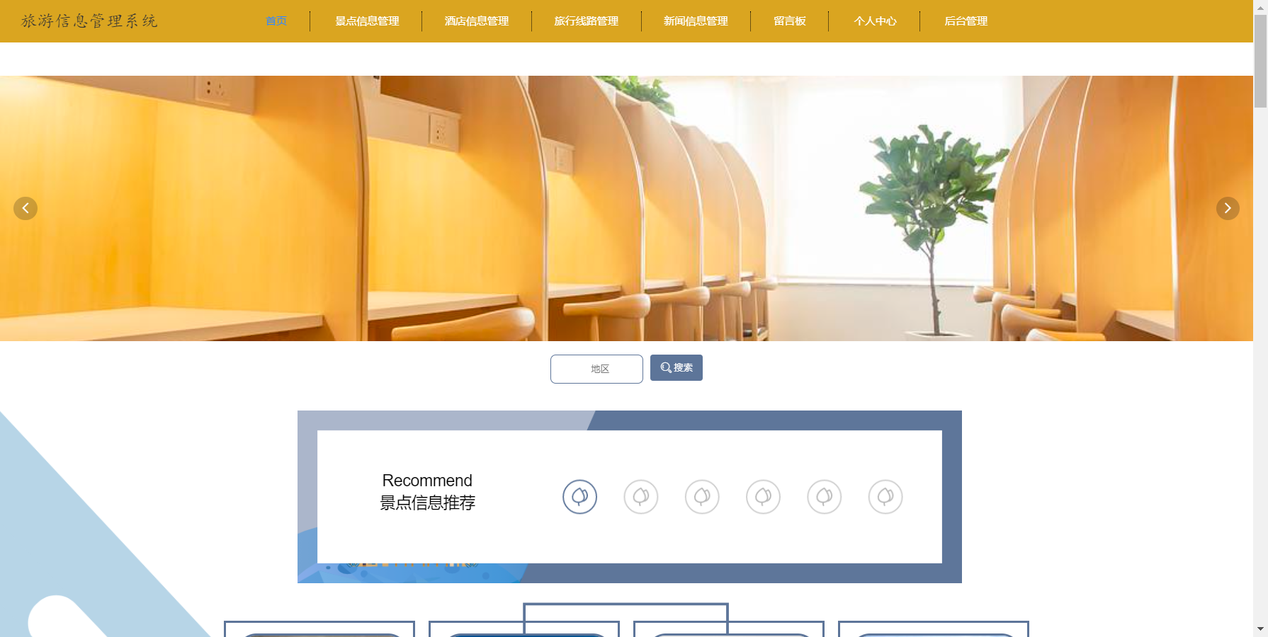 管理员:个人中心、用户管理、地区管理、景点类型管理、景点信息管理、预订门票管理、房间类型管理、酒店信息管理、 旅游路线管理、酒店预订管理、交通路线管理、门票统计管理、留言板、系统管理等