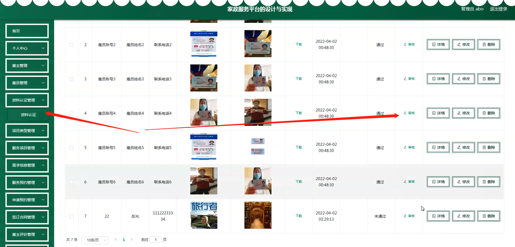 雇员功能模块:前台查看需求信息,联系雇主进行预约服务等。登录后台上传资料认证,发布服务项目、服务预约管理、申请预约管理、签订合同管理、雇主评价管理等。