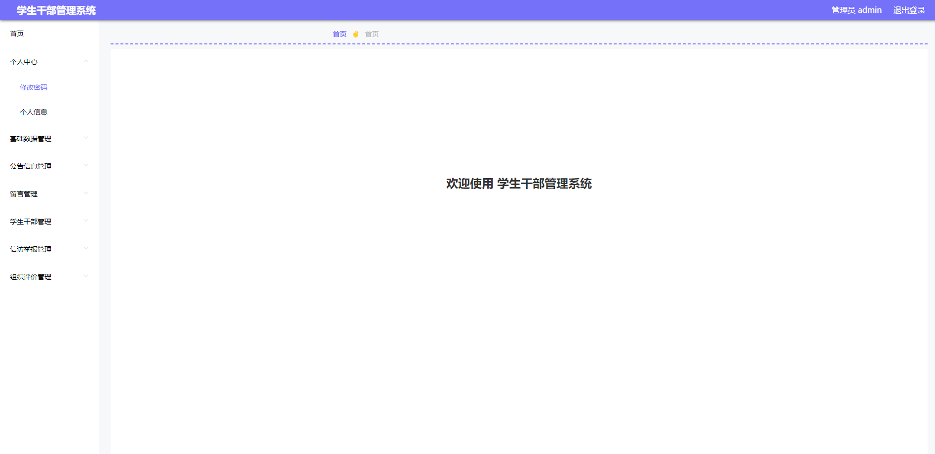 学生干部功能有:个人信息管理、公告查看、留言查看、信访举报、组织评价查看