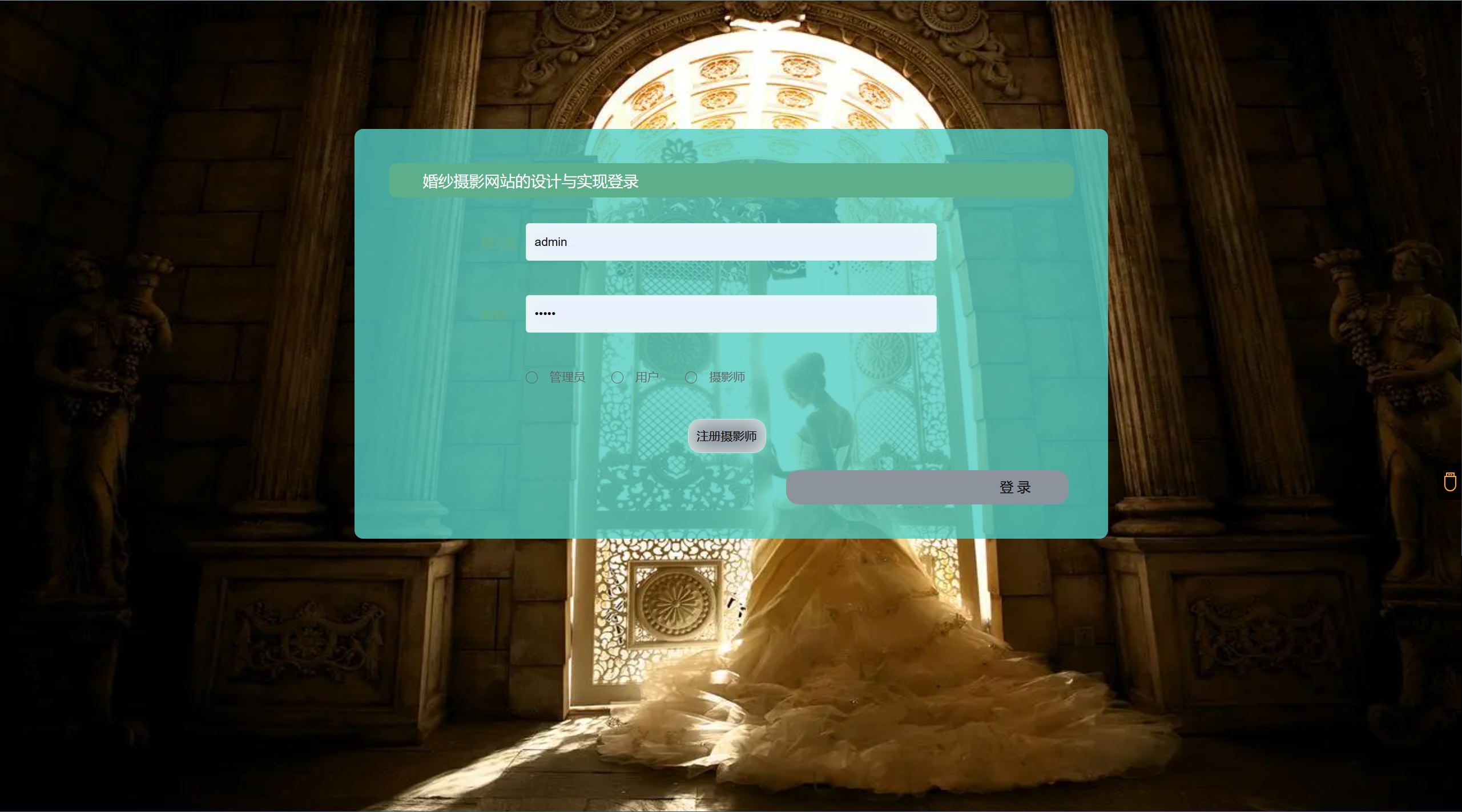 管理人员需要做的就是将数据输入到系统的数据库中去。经过分析,本系统选择java技术,运用了MySQL为后台数据库,将网站分为管理员、摄影师和用户这三大类,系统实现了个人中心、用户管理、摄影师管理、套餐内容管理、拍摄场景管理、全球样片管理、预约拍摄管理、全球客片管理、系统管理等必需的功能,除此以外还加入了一些增加使用体验的功能。其操作简单,界面友好,运行比较稳定,适用于婚纱摄影的管理。