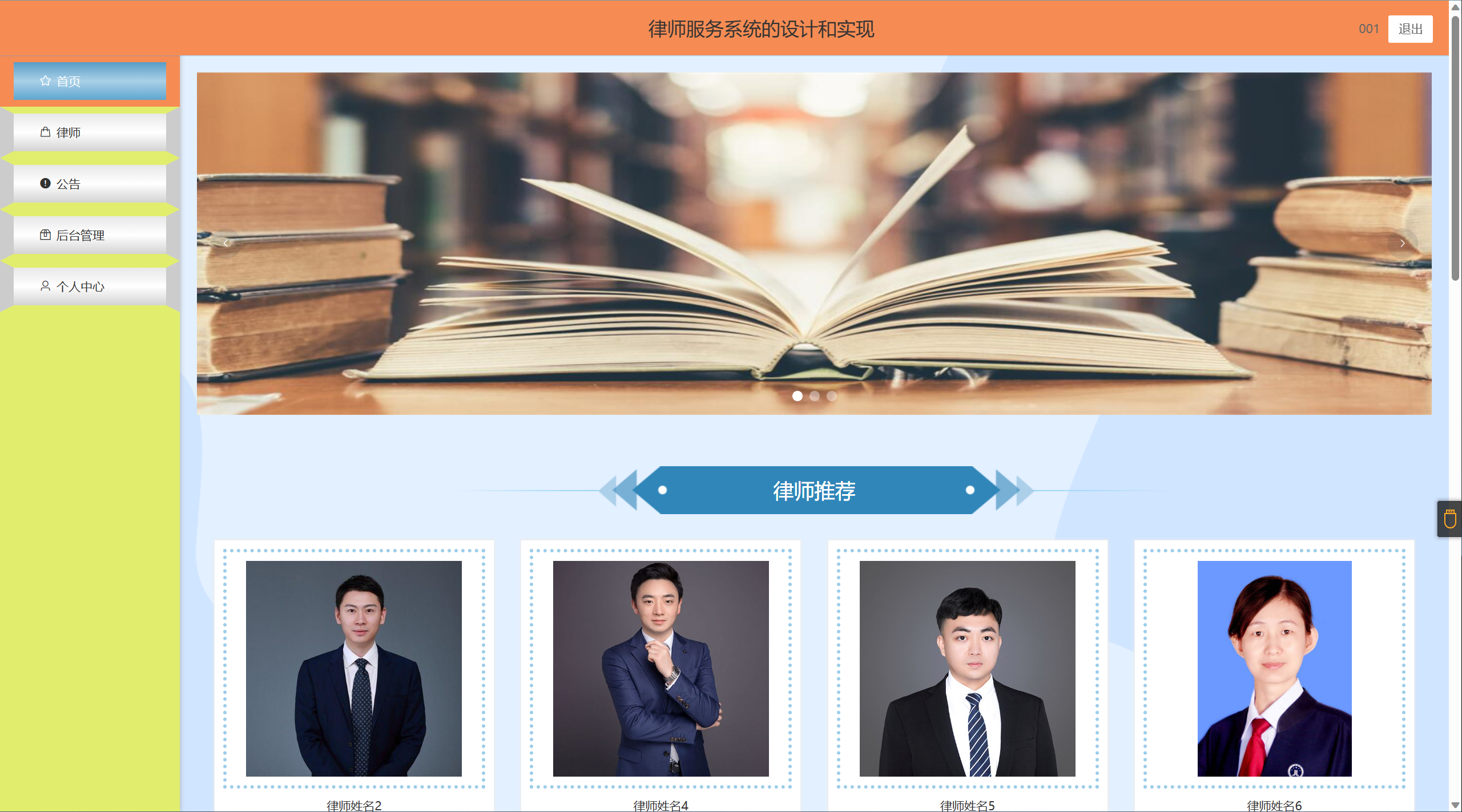 本律师服务系统采用B/S架构,数据库是MySQL,网站的搭建与开发采用了先进的Java进行编写,使用了Spring Boot框架。该系统从四个对象:由管理员、律师、主任和用户来对系统进行设计构建。前台主要功能包括:用户注册、登录、浏览首页、查看律师、公告等详情,并在线进行案件委托、支付法律援助费用等操作。本系统在一般律师服务平台的基础上增加了首页推送最新信息的功能,方便用户快速浏览,是一个高效的、动态的、交互友好的律师服务平台。